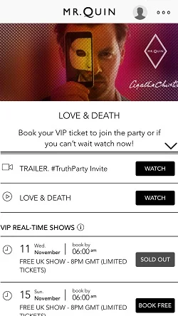 The app's homepage, where you can sign up for live shows, watch your #TruthParty invitation, and follow along with the story.
