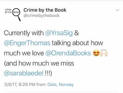 Last weekend, I traveled to Oslo, Norway for Krimfestivalen 2017! This crime fiction festival takes place over 3 days, and includes a whole variety of panels and activities with authors from Scandinavia and around the world. I absolutely loved my time in Oslo—by the end of the weekend I was ready to pack up and move to Norway permanently!