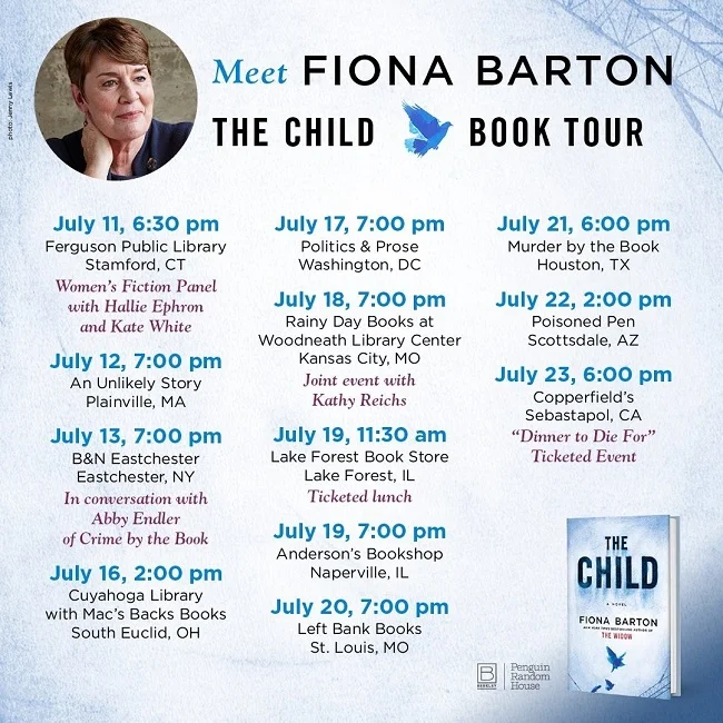 If you live in the New York area, mark your calendars! Fiona Barton and I will be appearing at Barnes & Noble Eastchester on July 13, 2017, as part of Fiona's book tour for THE CHILD. I’d love to see you there!
