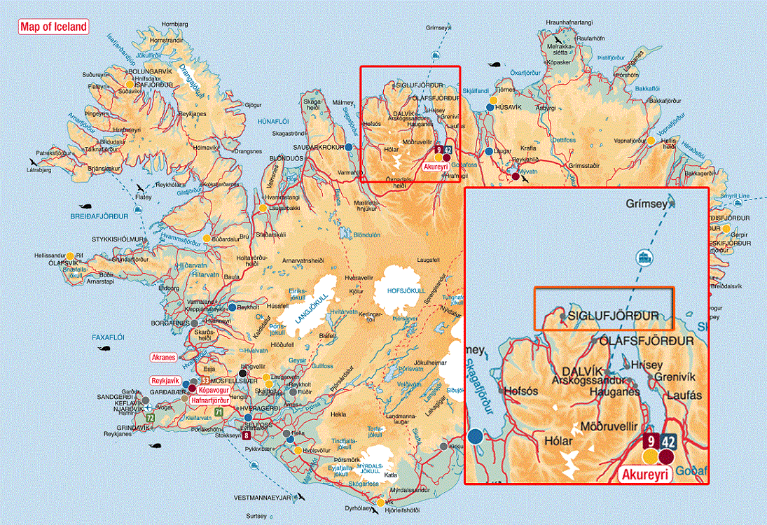 Siglufjörður is a small fishing town on the northern coast of Iceland. You'll see it highlighted on the map below!