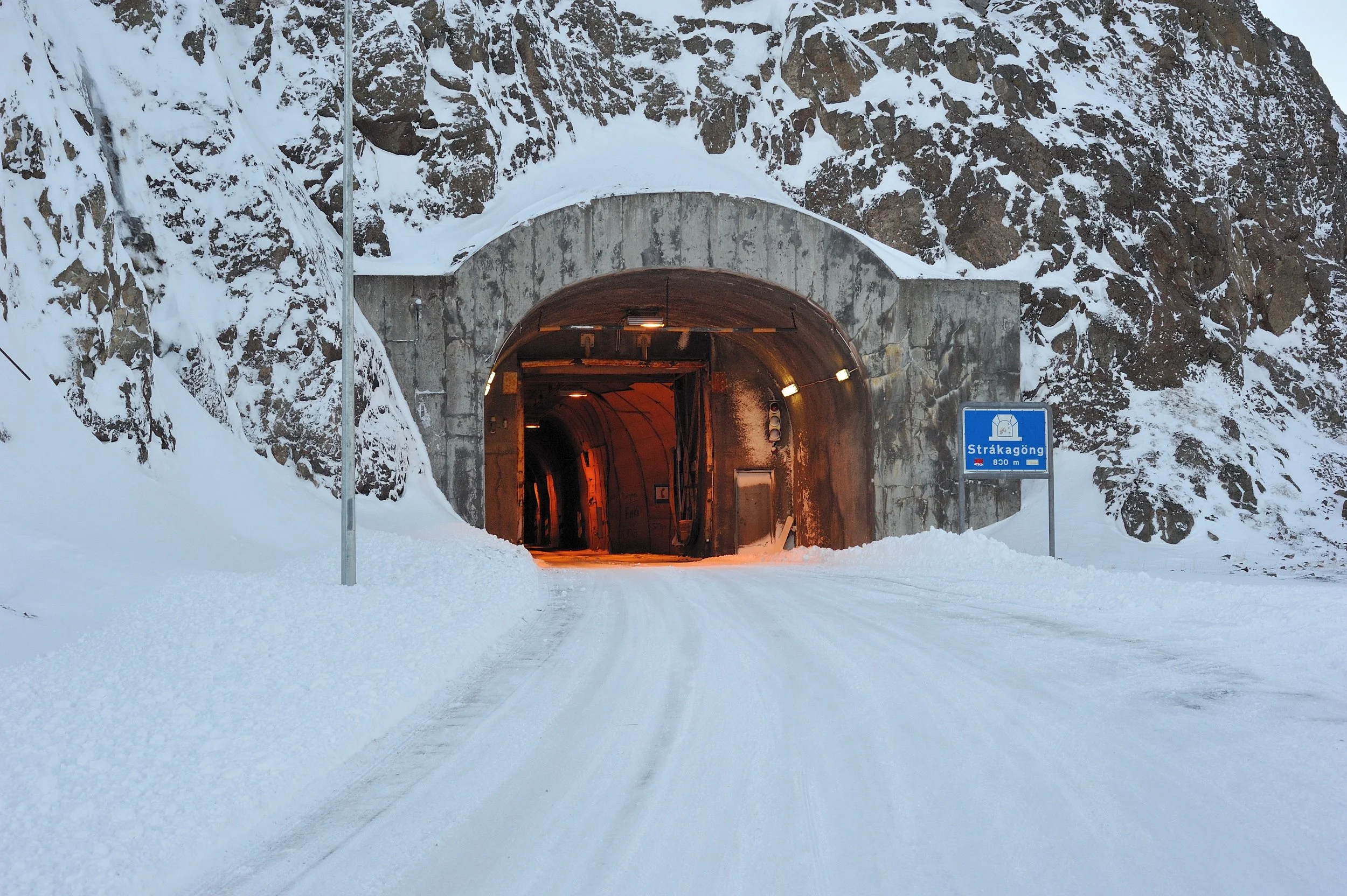 Ragnar: Strákagöng is a single track tunnel that is 830 meters long. Before Strákagöng, the only way to get to Siglufjörður was by sea or by air, or by a very difficult mountain road which was only open in the height of summer.